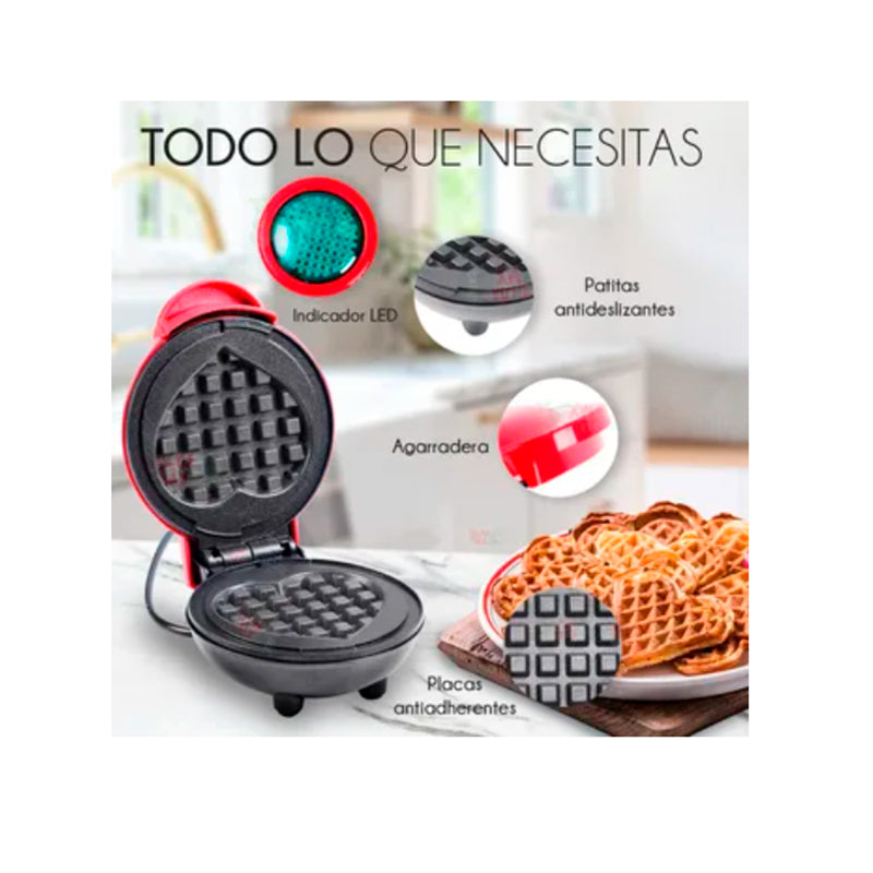 ¡Haz que tus desayunos sean más divertidos y deliciosos con esta increíble waflera!Podrás disfrutar de waffles perfectamente cocidos y dorados en cuestión de minutos. Su diseño fácil de usar y su tecnología de cocción uniforme garantizan resultados consistentes en cada uso, desde waffles crujientes hasta esponjosos y llenos de sabor.Ya sea que desees un desayuno delicioso en la mañana o un postre dulce por la noche, nuestra waflera es el complemento perfecto para cualquier ocasión. ¡Pregunta por el tuyo!CARACTERÍSTICAS PRINCIPALESMáquina doméstica de 350 W de potencia, bajo consumo de energía, fácil de operar, fácil de transportar, para satisfacer las necesidades de diferentes ocasiones como viajes.